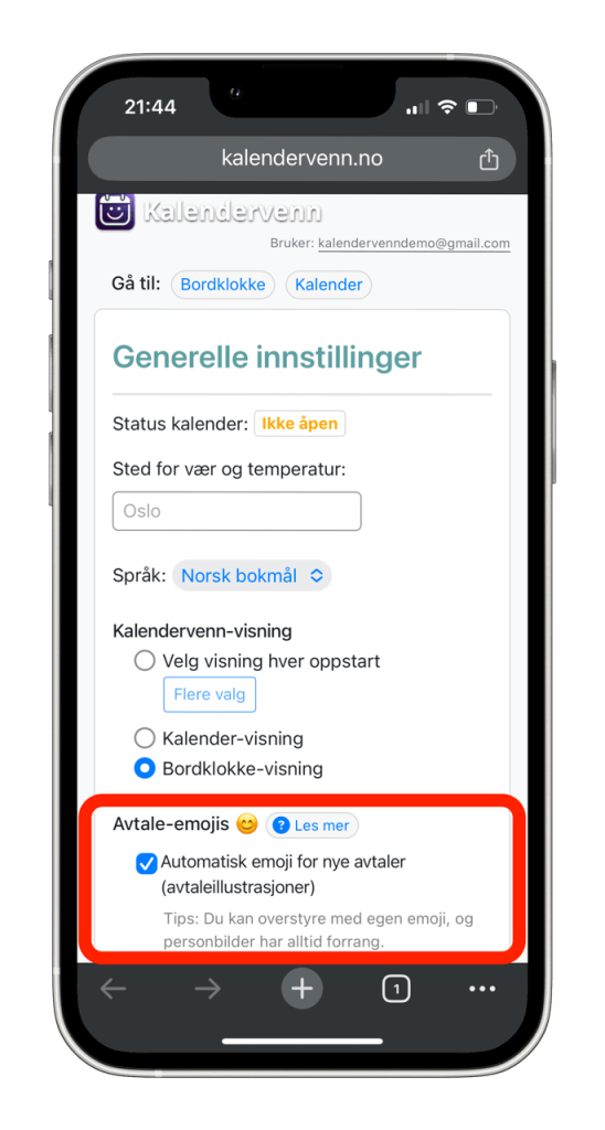 - Det enkleste er å redigere avtalen i kalender-appen din (på mobil eller PC), og legge inn en emoji du liker i avtaleteksten i stedet. Lagre endringen, og den nye emojien vil vises etter få sekunder på Kalendervenn-skjermen.