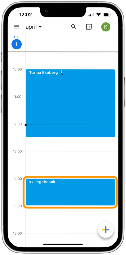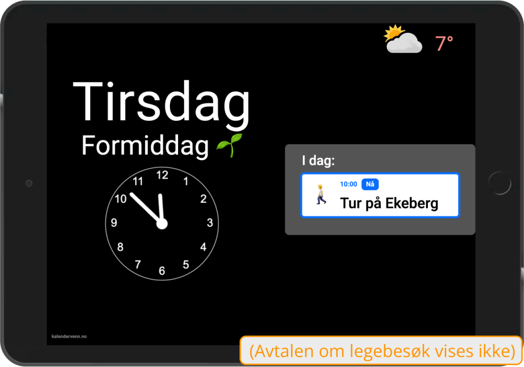 I Kalendervenn-visningen blir da legebesøk-avtalen skjult – og den andre vises som normalt: