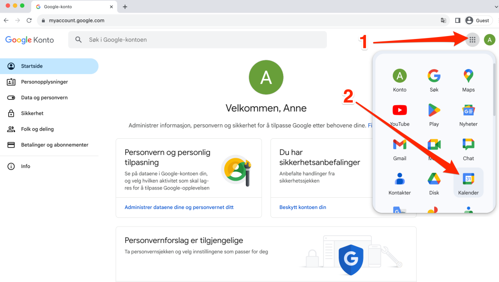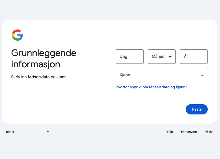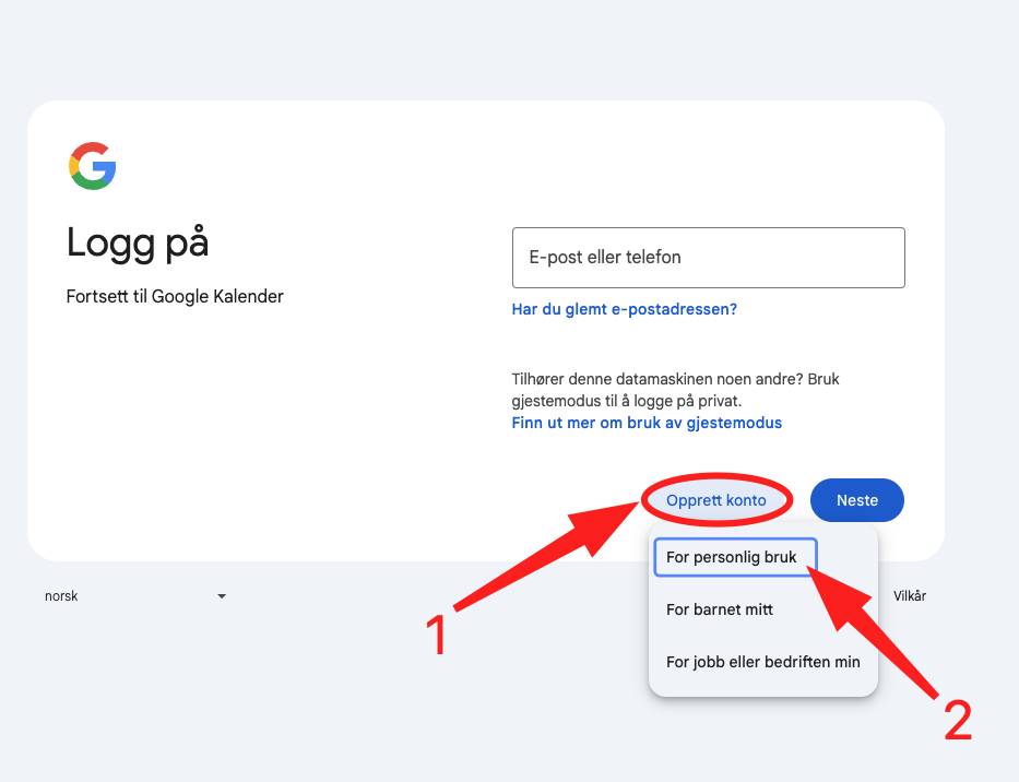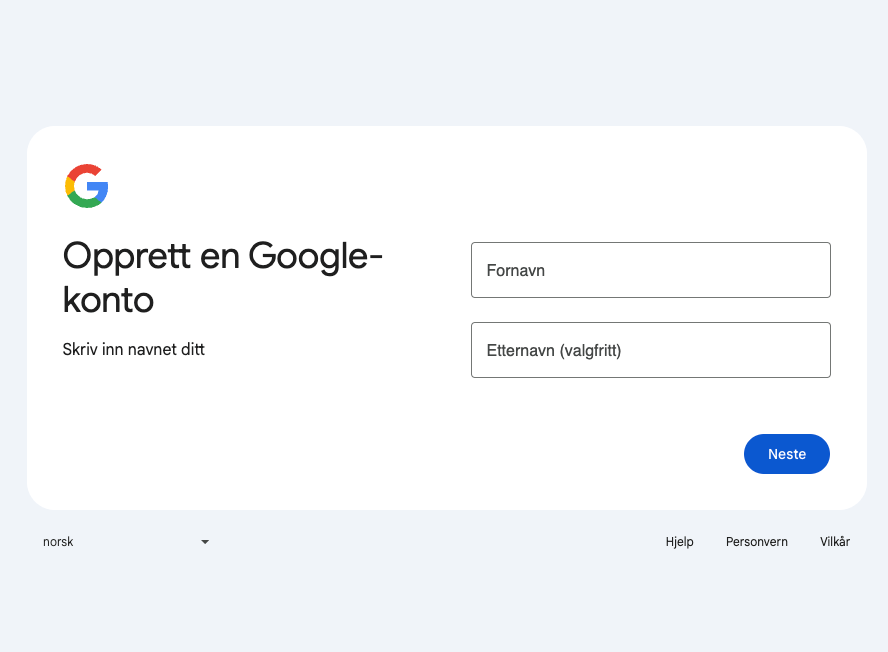Kalendervenn er integrert mot Google Kalender, og du trenger derfor en Google-konto for å komme i gang. Dersom du ikke har dette fra før går vi gjennom stegene under (det er kostnadsfritt å opprette en Google-konto).