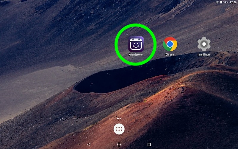 Tips: Avhengig av innstilling på nettbrettet er det ikke alltid app-ikoner havner på hjem-skjermen. Du må i såfall finne det frem i App-listen eller om det har plassert seg på en annen hjem-skjerm side. Søk i såfall opp Kalendervenn og flytt deretter ikonet til ønsket skjermside.